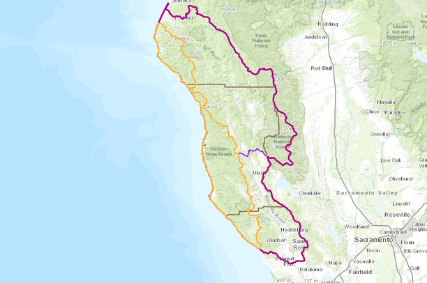 Map of study areas in Sonoma and Mendocino Counties. | U.S.